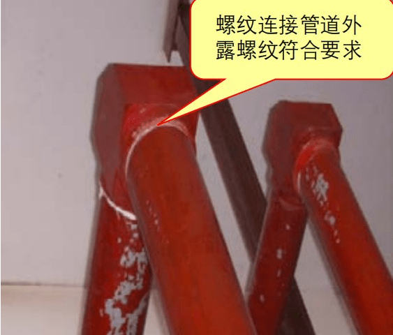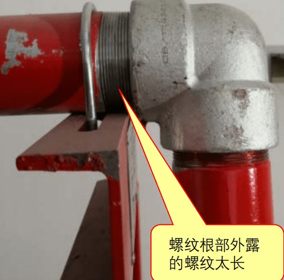 3)螺纹连接管道安装后的螺纹根部外露螺纹过长,不符合要求;【图示2】