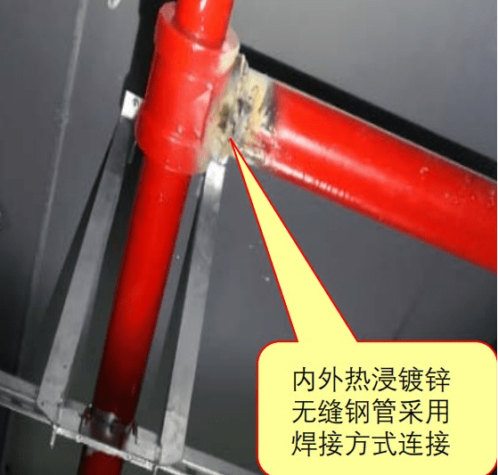 1)管网江西气体灭火管道内外热浸镀锌无缝钢管采用焊接方式连接,造成管道、管件内部镀锌层破坏,无法进行二次防腐处理;【图示1】